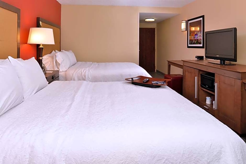 Two queen beds featuring complimentary wi-fi, desk work station, microwave, refrigerator, HD television, coffee/tea maker